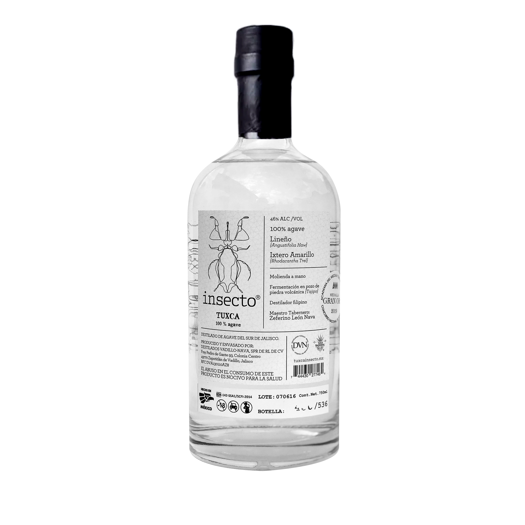 Tuxca insecto® es un destilado de agave, mezcal del sur de jalisco. Lotes pequeños (no mas de 400 lts.) De agaves Lineño, ixtero amarillo, cimarrón, entre otros.
